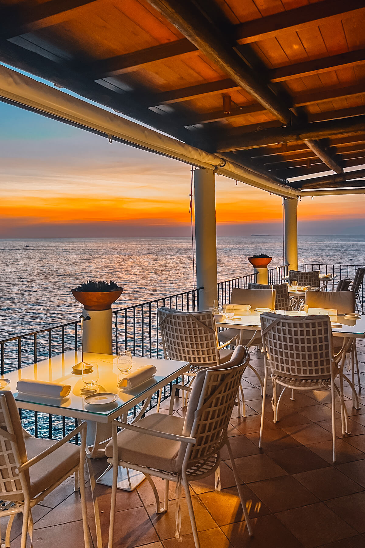 It is the vibrant soul of this exclusive corner, which has earned a place on the list of Italy's ten most spectacular restaurants with a view. With an enchanting dehors overlooking the sea, which seats only 10 tables, and two elegant interior rooms with large windows directly overlooking the seascape, the restaurant is perfect for unforgettable events, accommodating up to 140 people.