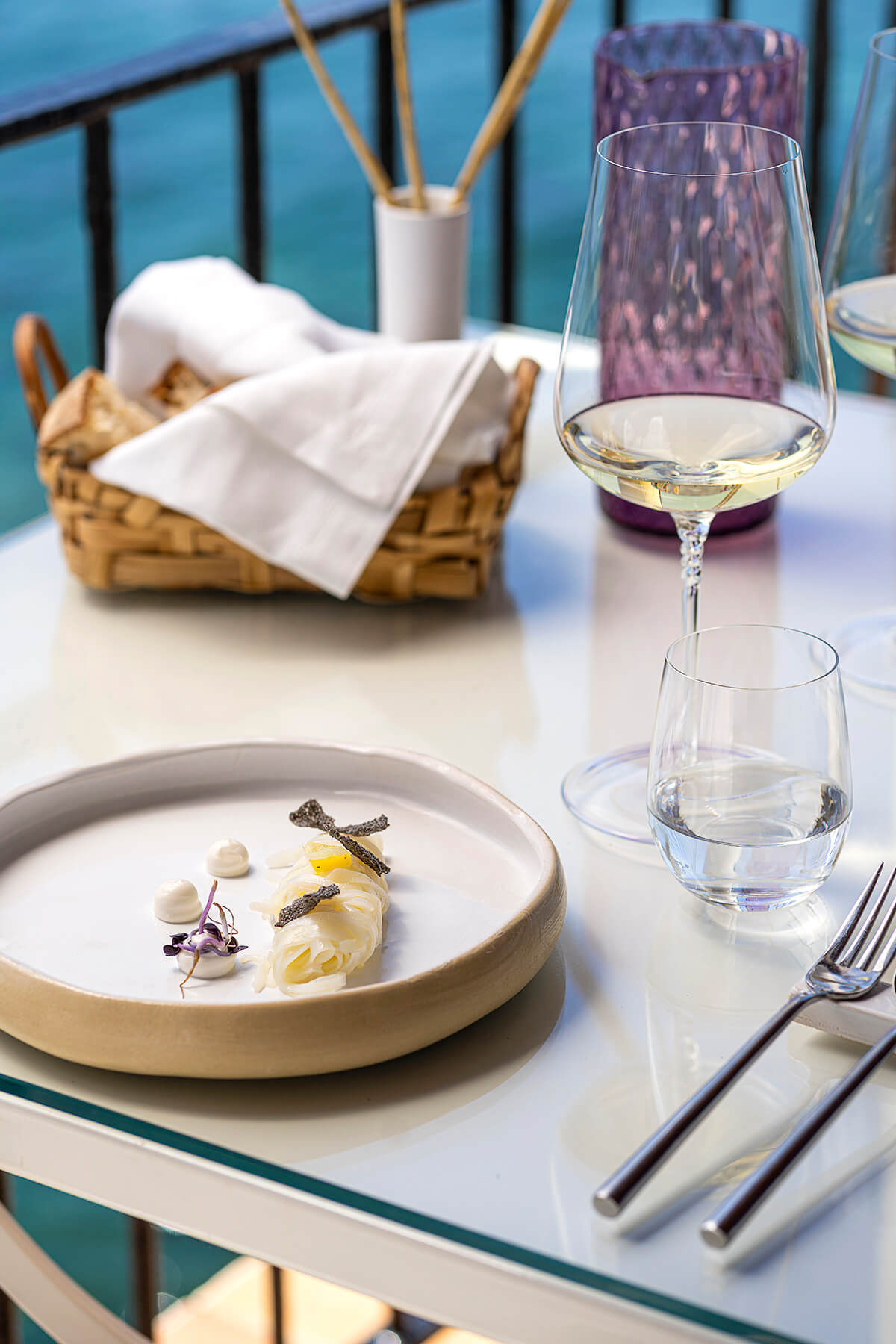 The cuisine of our restaurant is a meeting of simplicity and elegance, an essential and instinctive art that recounts deep emotions and life memories. Although it may be defined as ‘local cuisine’ or ‘traditionally inspired’, it is actually a concentration of family experiences, born in the heart of an area rich in tradition. Each dish is a tribute to moments shared with mothers, grandmothers and aunts, in an environment where the hearth is the centre of family life. A refined and authentic culinary experience, which finds its ideal place in a luxury panoramic restaurant, where every detail is designed to offer you the best of tradition with an unforgettable view of the sea.